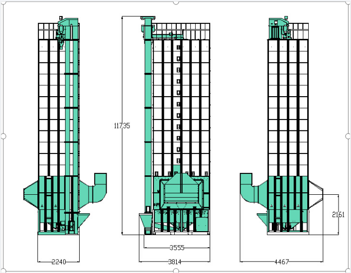 2. 強(qiáng)制分散裝置及多支排糧輪定量下料循環(huán),薄層大風(fēng)量,谷物干燥均勻,干燥效率高。